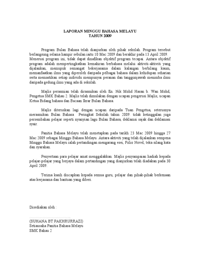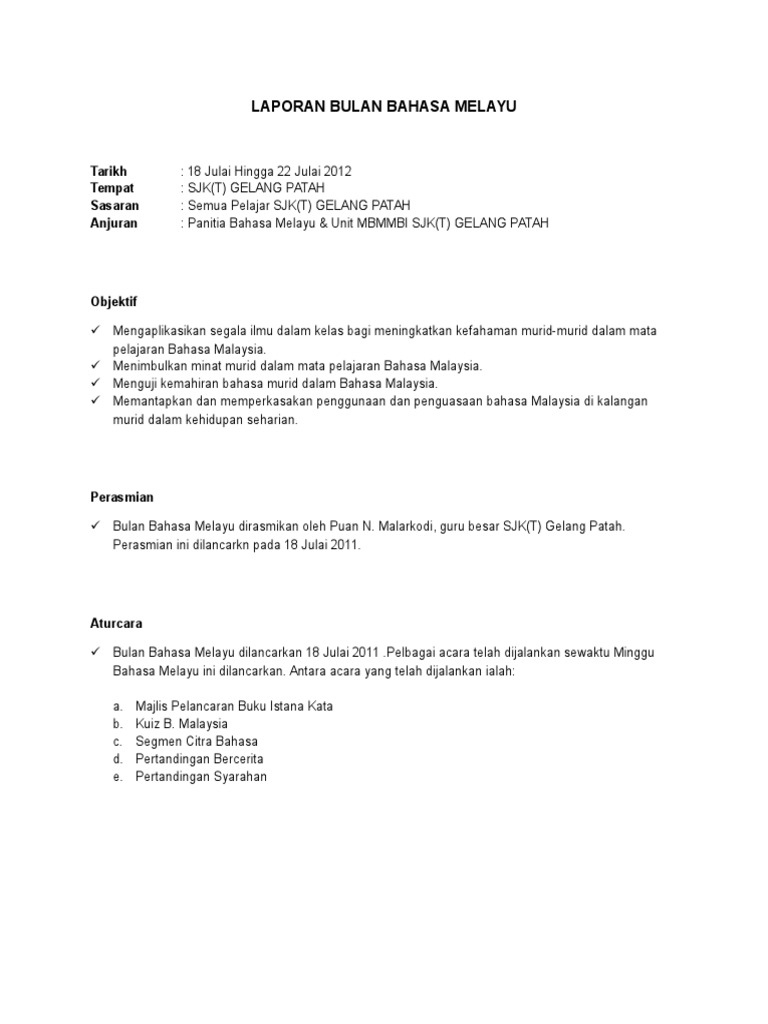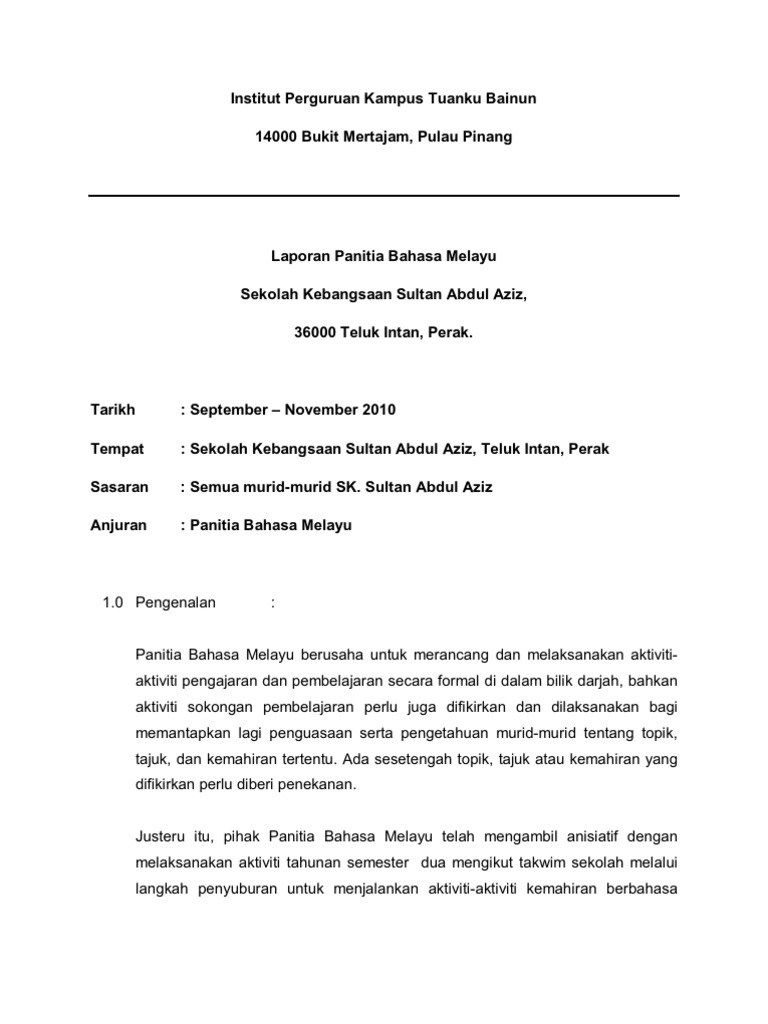 Laporan Aktiviti Panitia Bahasa Melayu Pdf
